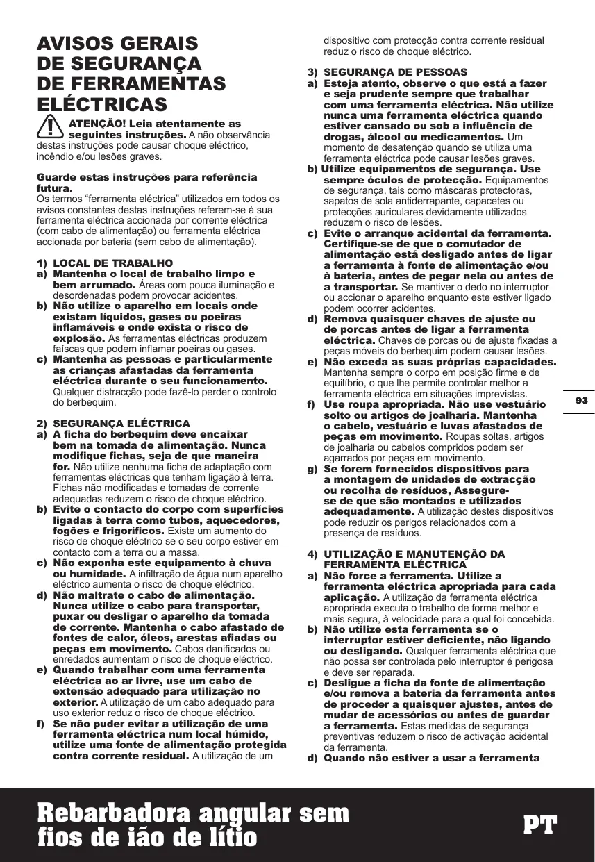 €) Débrancher la fiche de la source d'alimentation en courant et/ou le bloc de batteries de l'outil avant tout réglage, changement d'accessoires ou avant de ranger l'outil. De telles mesures de sécurité préventives réduisent le risque de démarrage accidentel de l'outil