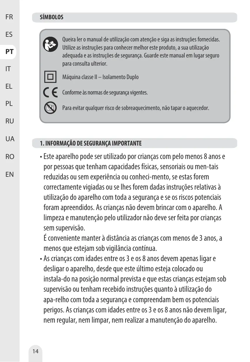 + Ne pas utiliser cet appareil de chauffage à proximité d'une baignoire, d'une douche ou d'une piscine.