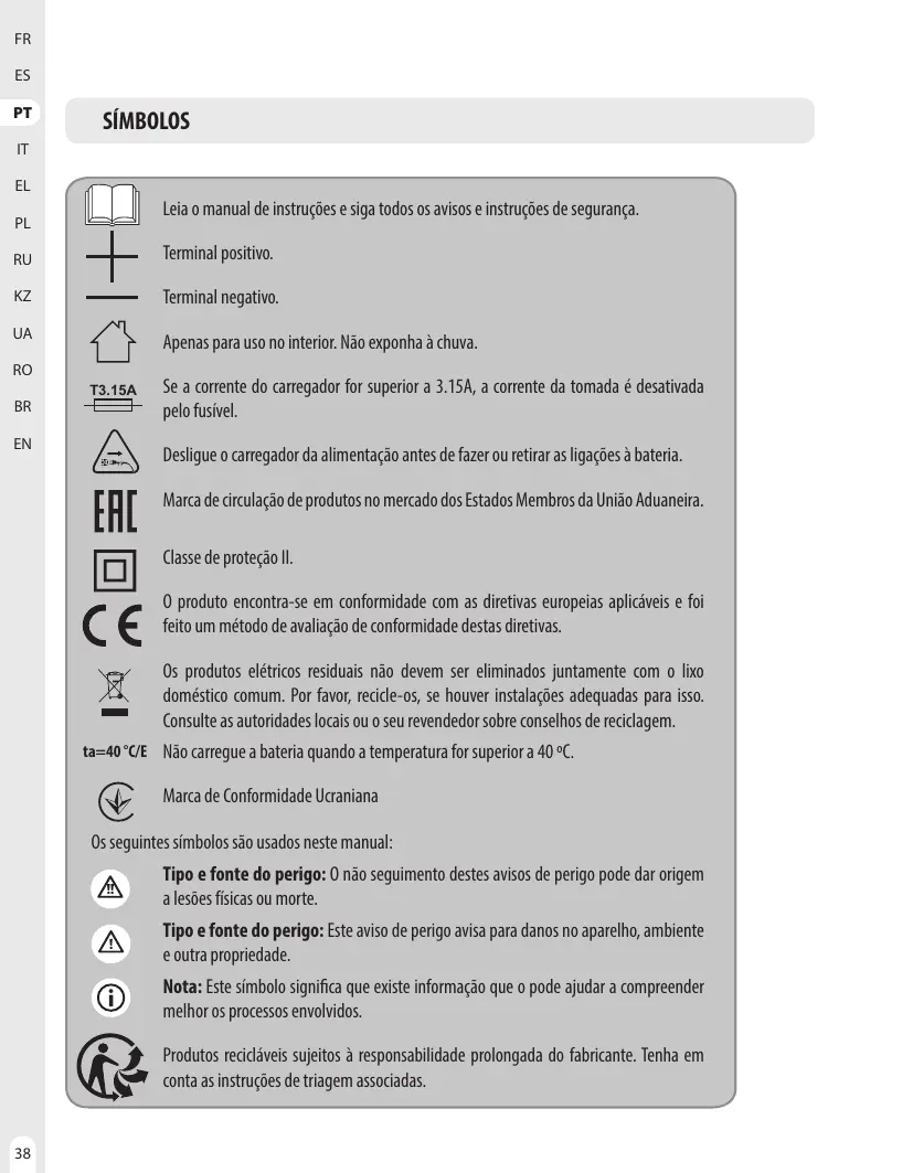 5. MANUTENÇAO LIMPEZA Desligue da tomada antes de qualquer procedimento de limpeza. Conserve esse carregador ivre de detrtos