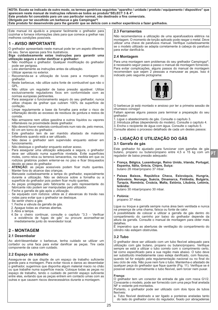 Encontre gratuitamente o manual do aparelho SELECT 3 LX PLUS CAMPINGAZ em formato PDF.