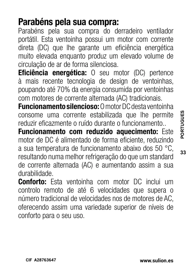 MANUAL DE UTILIZADOR CAMP FLY - 2182391 / 2181264 SULION