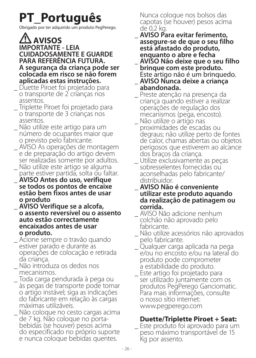 DUETTE PIROET - Poussettes doubles PEG PEREGO - Manual de utilização gratuito