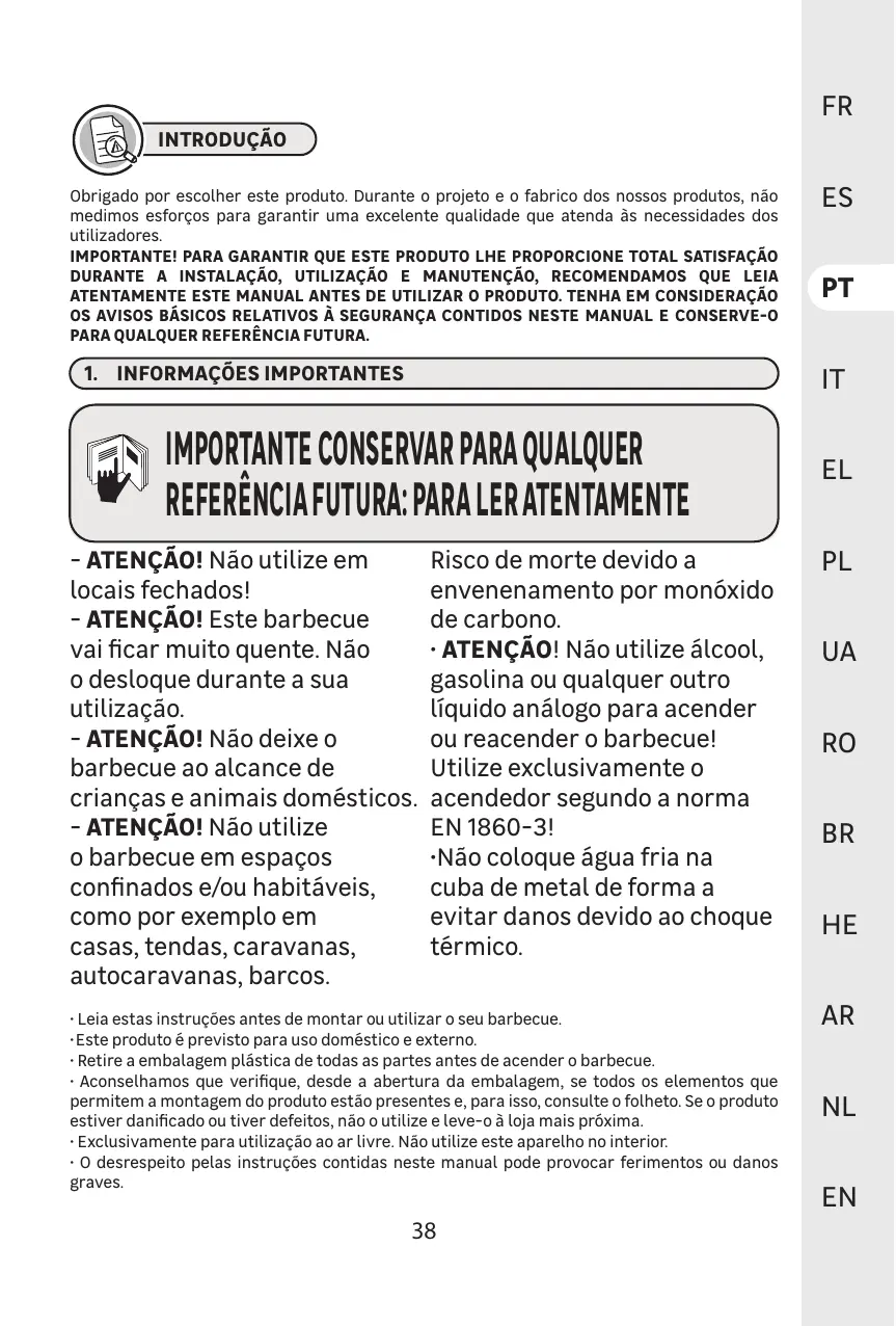 -Ce produit est prévu pour un usage domestique et extérieur. - Retirez l'emballage en plastique des toutes Les parties avant d'allumer Le barbecue.