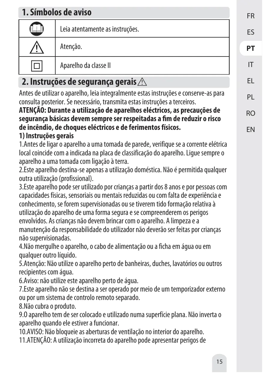 2.Cet appareil est uniquement destiné à un usage domestique. Aucun autre usage (par exemple professionnel) n'est autorisé.