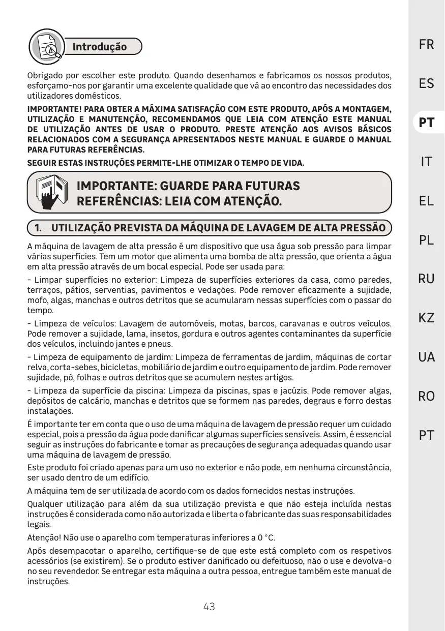 FN IMPORTANT - À CONSERVER POUR TOUTE REFERENCE ULTÉRIEURE : VEUILLEZ LIRE ATTENTIVEMENT QG. UTILISATION PRÉVUE DU NETTOYEUR HAUTE PRESSION )