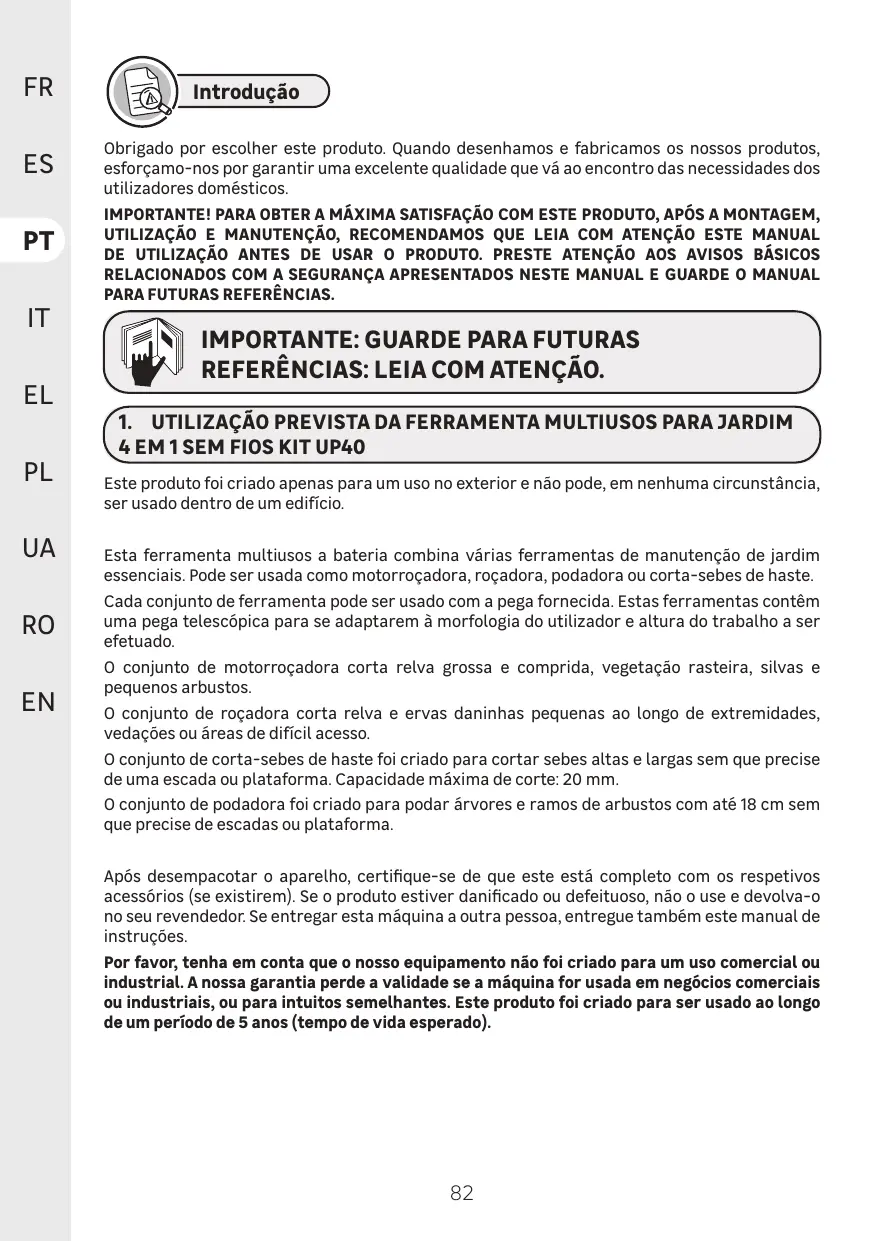 36V UP40 - Outil multifonction STERWINS - Manual de utilização gratuito