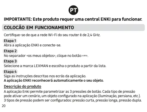 MANUAL DE UTILIZADOR Bouton connecté LEXMAN
