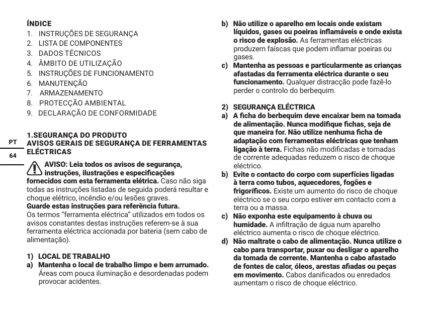 6. ENTRETIEN AVERTISSEMENT : Lorsque vous devez entreprendre des travaux d'inspection, d'entretien et de nettoyage, assurez-vous que le produit a été éteint, qu'il a refroidi et que le bloc-batteries a été retiré.