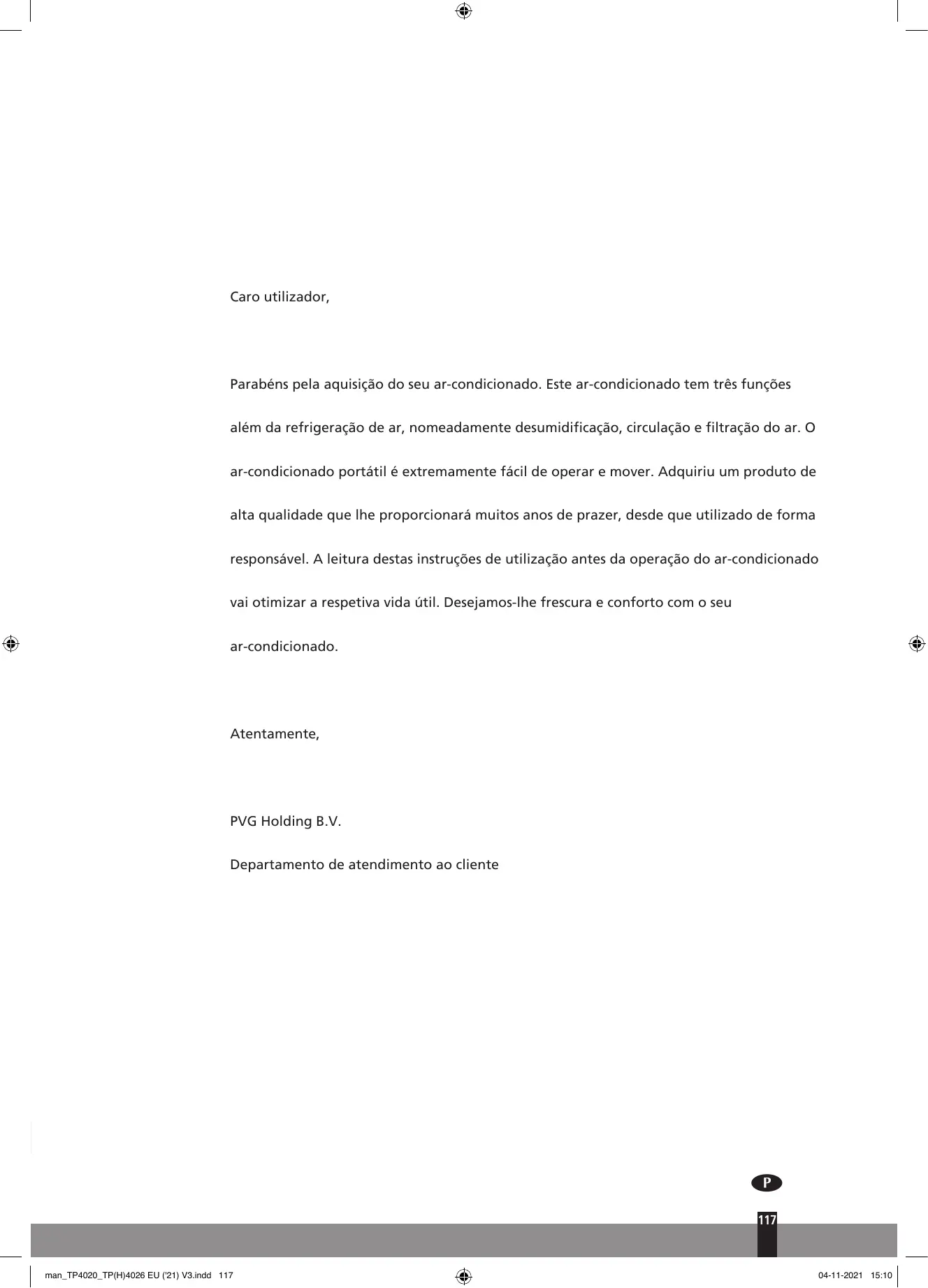 TPH4026 - TP4020 - Ar condicionado portátil TECTRO - Manual de utilização gratuito