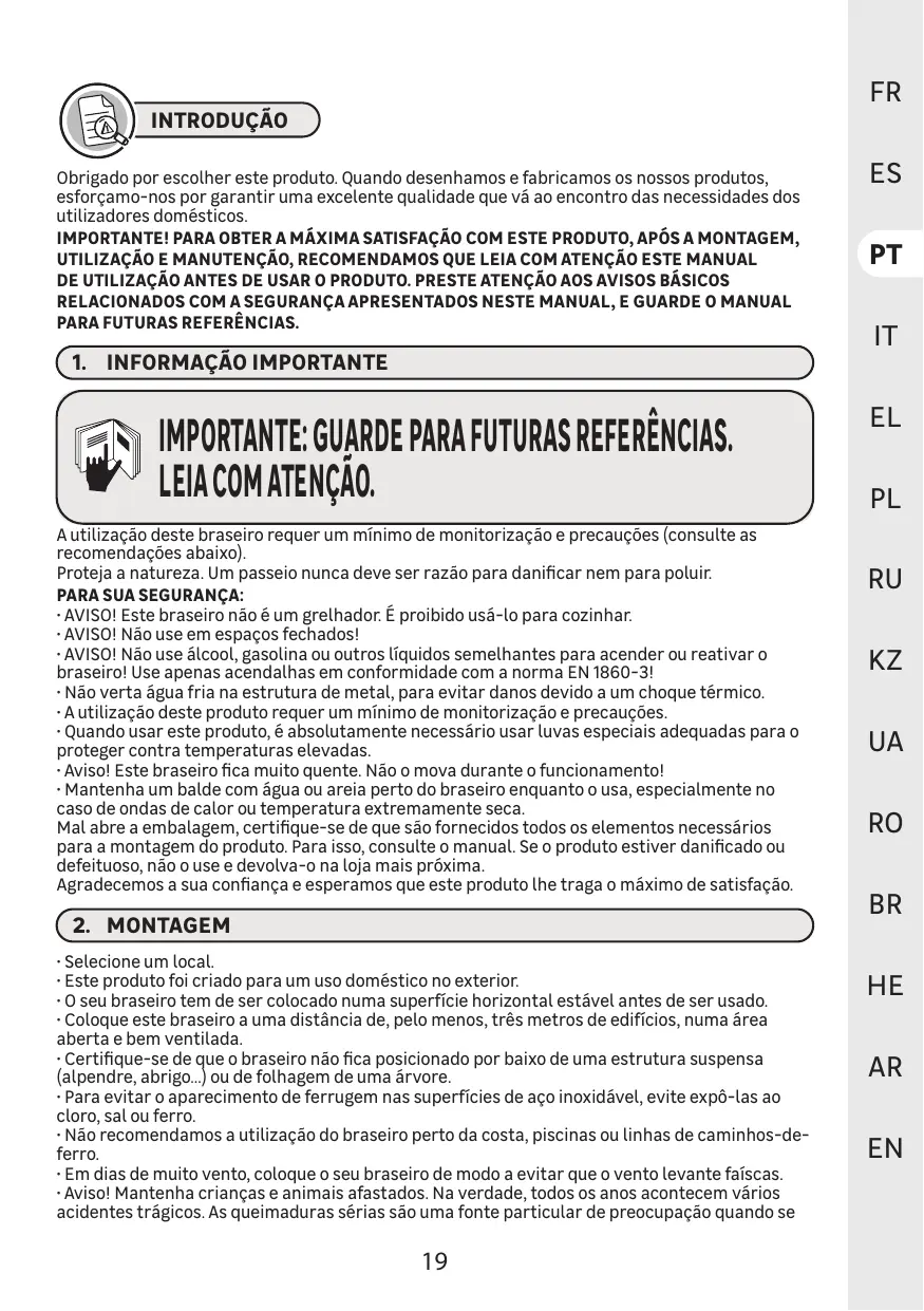 - ATTENTION! Ce brasero n'est pas un barbecue, il est fortement interdit de l'utiliser comme moyen de cuisson.