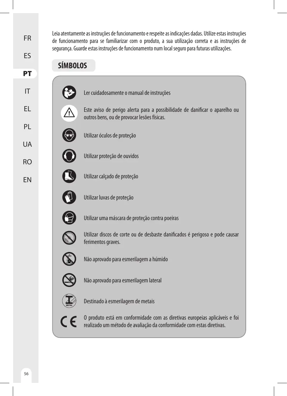 EN Veuillez utiliser une housse de protection pour le meulage.
