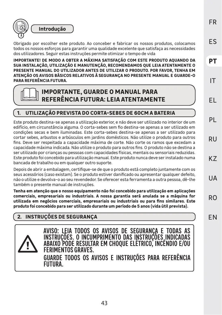 ae UTILISATION PRÉVUE DU TAILLE-HAIE À BATTERIE 60 CM )
