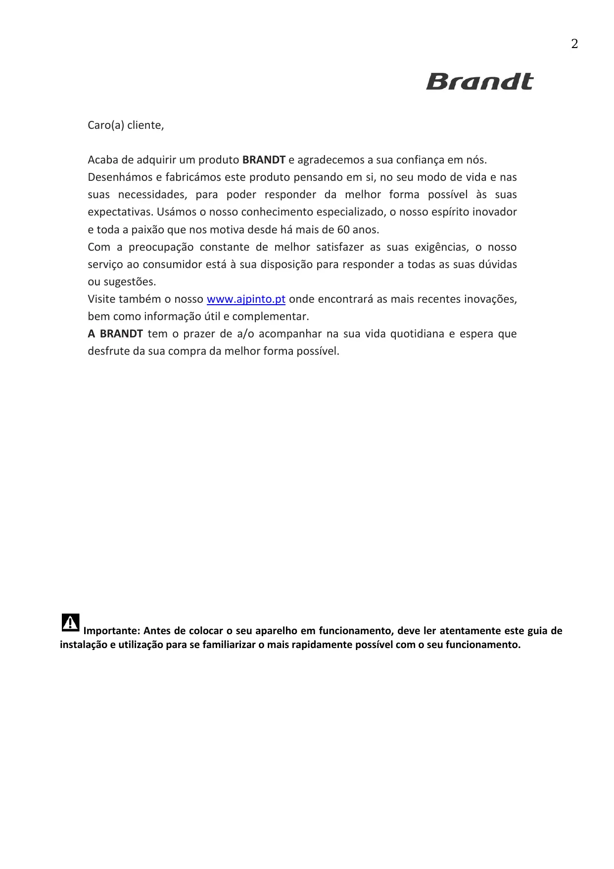 Connectez-vous aussi sur notre site www.brandt.com où vous trouverez nos dernières innovations, ainsi que des informations utiles et complémentaires.