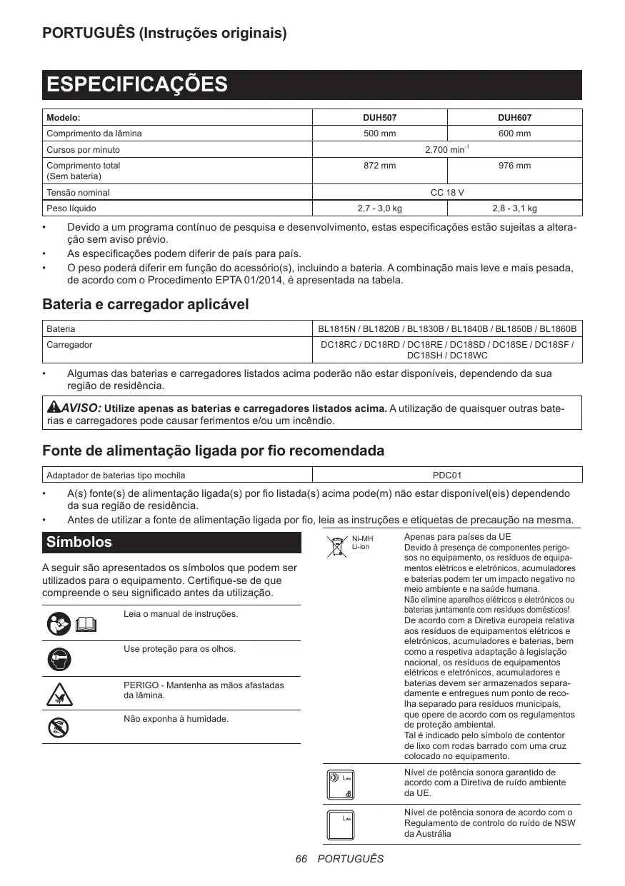 Encontre gratuitamente o manual do aparelho DUH507 - DUH607 MAKITA em formato PDF.