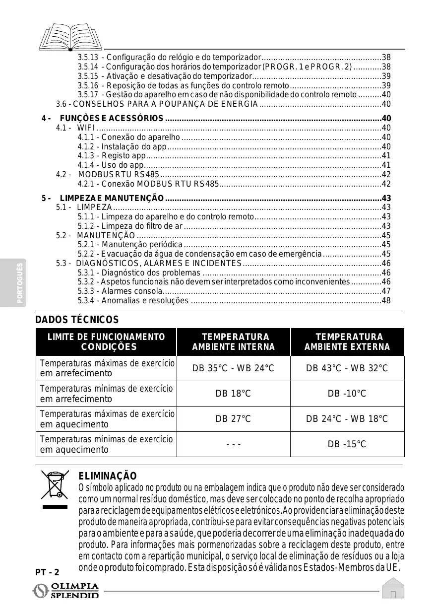 défaillance de l'appareil, dégage la société OLIMPIA SPLENDID de toute forme de garantie et de tout dommage causé aux personnes, animaux ou objets.