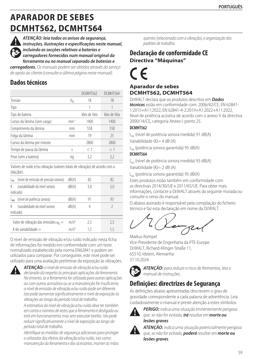DCMHT562 - DCMHT564 - Aparadores de sebes DEWALT - Manual de utilização gratuito