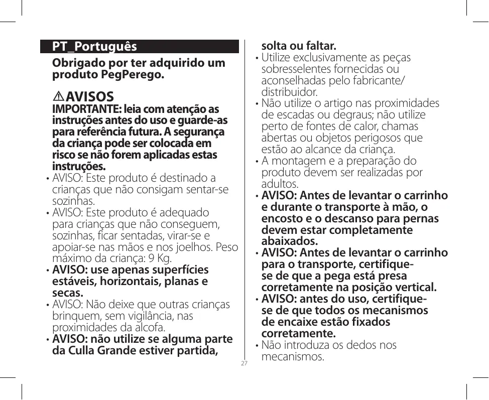 Encontre gratuitamente o manual do aparelho Culla Grande PEG PEREGO em formato PDF.