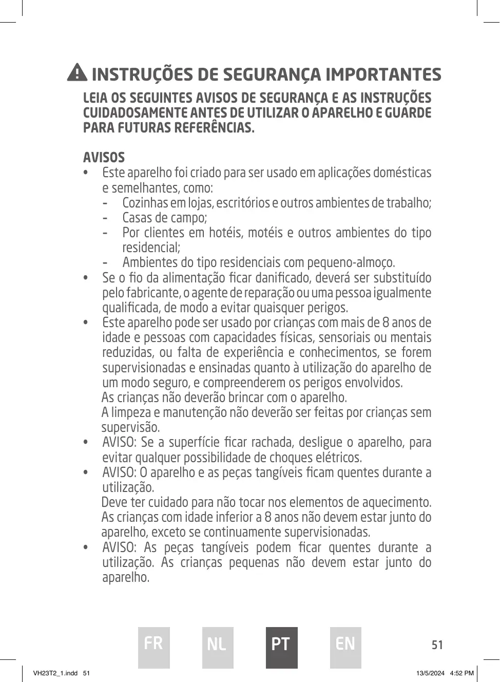 + AVERTISSEMENT: L'appareil et ses parties accessibles deviennent chaudes pendant l'utilisation.