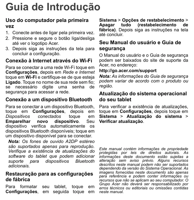 A10-11 - Tablet ACER - Manual de utilização gratuito