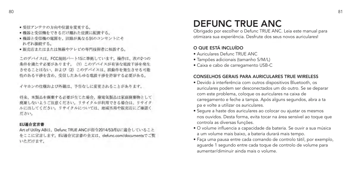 TRUE ANC - Fones de ouvido Defunc - Manual de utilização gratuito