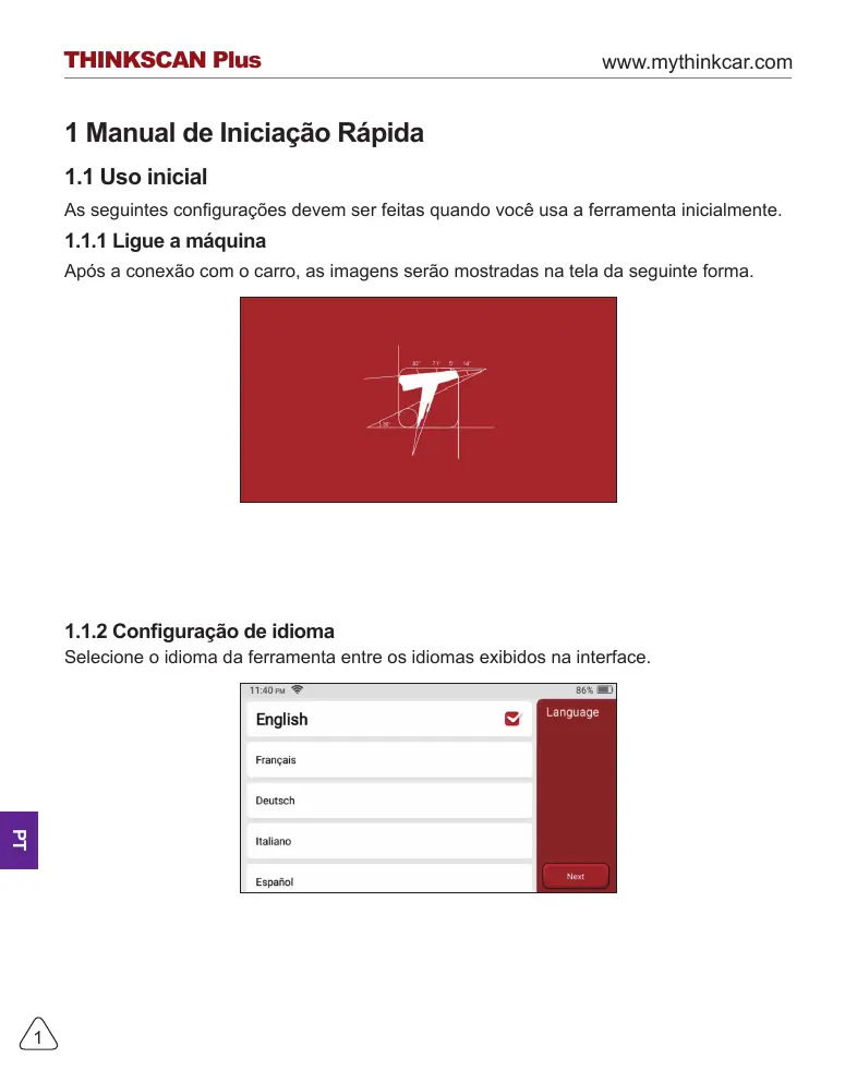 PD200 - Scanneur OBD II Thinkcar - Manual de utilização gratuito