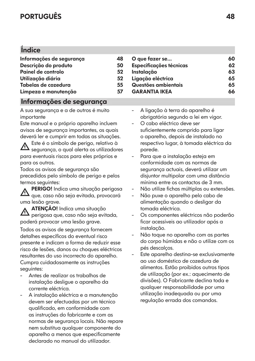 Na última página deste manual, encontrará a lista de Prestadores do Serviço de Pós-Venda designados pela IKEA e os respectivos números de telefone nacionais.