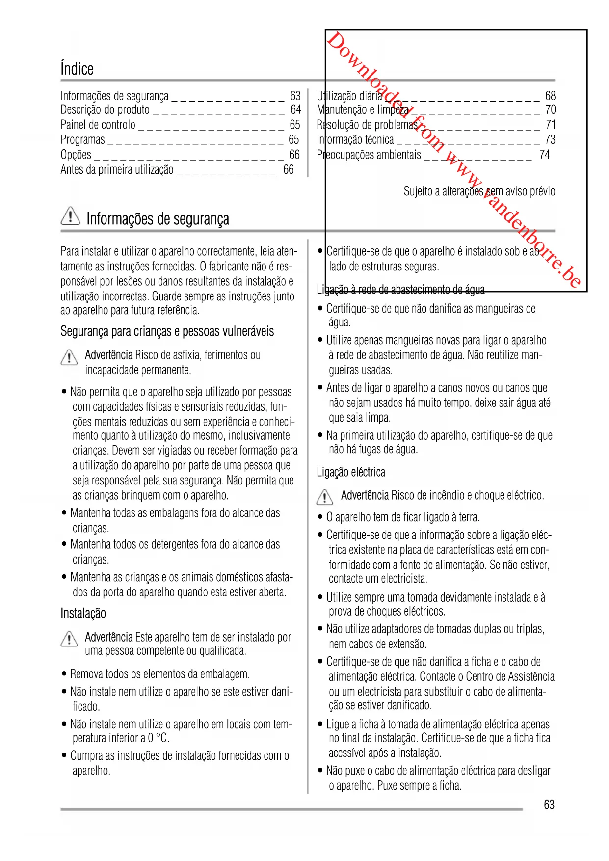 Informações de segurança _ _ _ _ _ _ _ _ _ _ _ _ _ 63