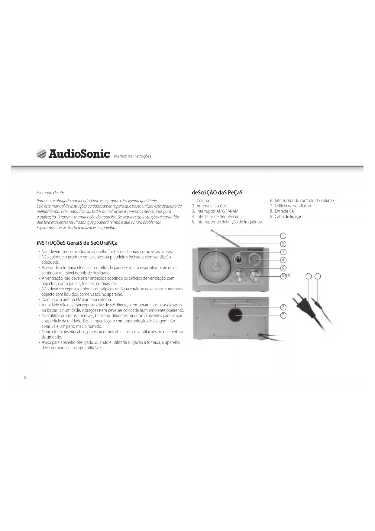 RD1540 - Rádio AudioSonic - Manual de utilização gratuito