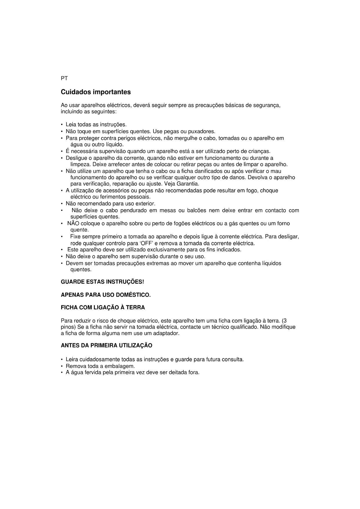 • A água fervida pela primeira vez deve ser deitada fora.INTRUÇÕES DE UTILIZAÇÃO