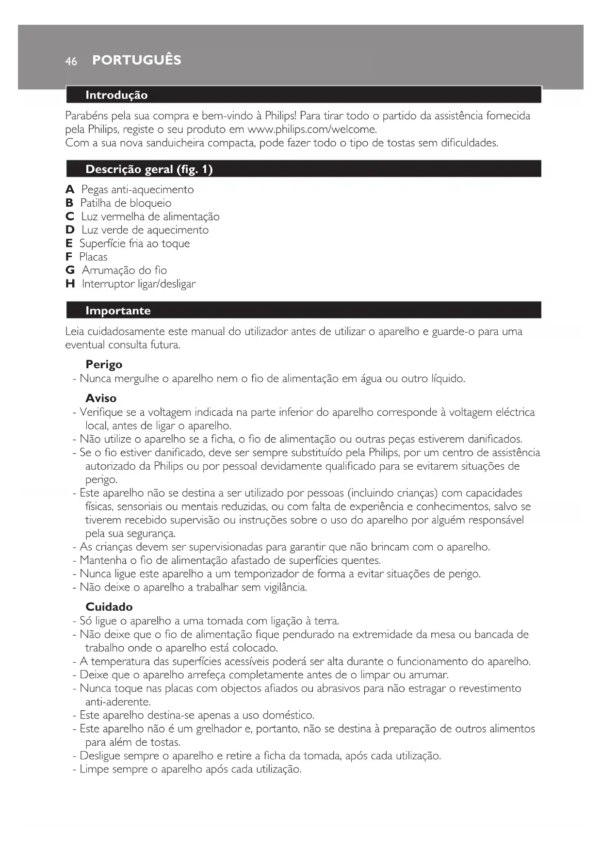 Parabéns pela sua compra e bem-vindo à Philips! Para tirar todo o partido da assistência fornecida pela Philips, registe o seu produto em www.philips.com/welcome. Com a sua nova sanduicheira compacta, pode fazer todo o tipo de tostas sem diculdades.