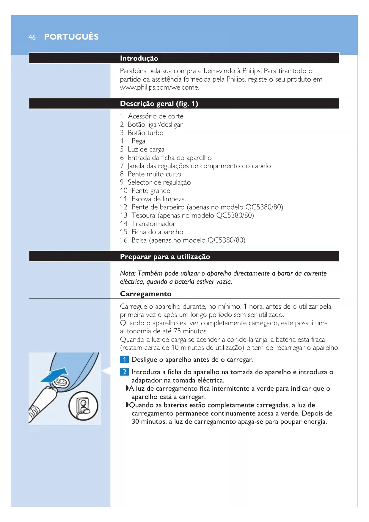 MANUAL DE UTILIZADOR Series 7000 QC5380 PHILIPS