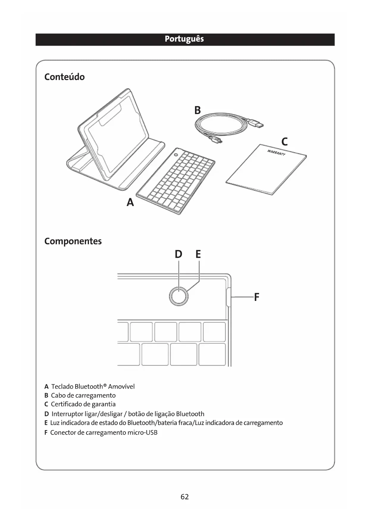 A Teclado Bluetooth® Amovível