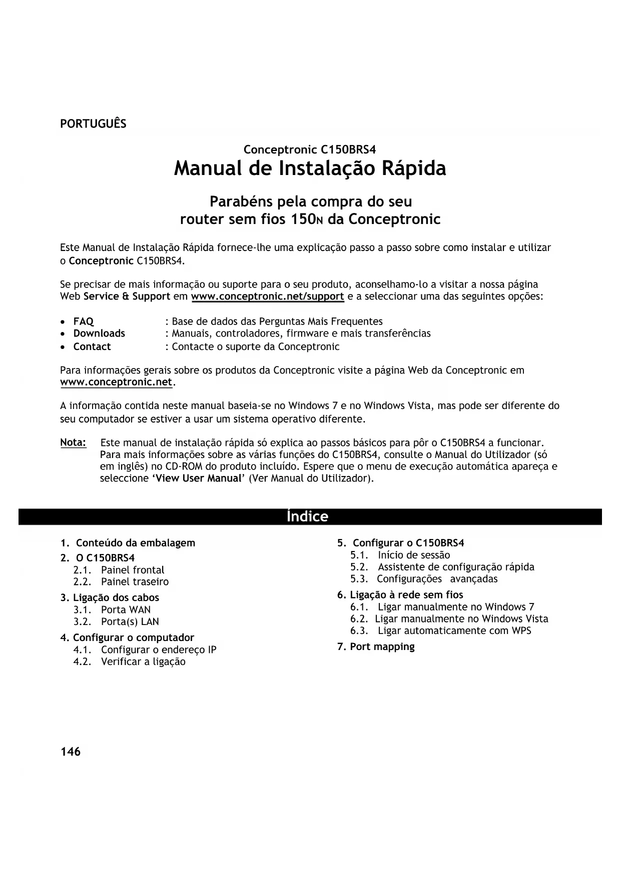Este Manual de Instalação Rápida fornece-lhe uma explicação passo a passo sobre como instalar e utilizar o Conceptronic C150BRS4.