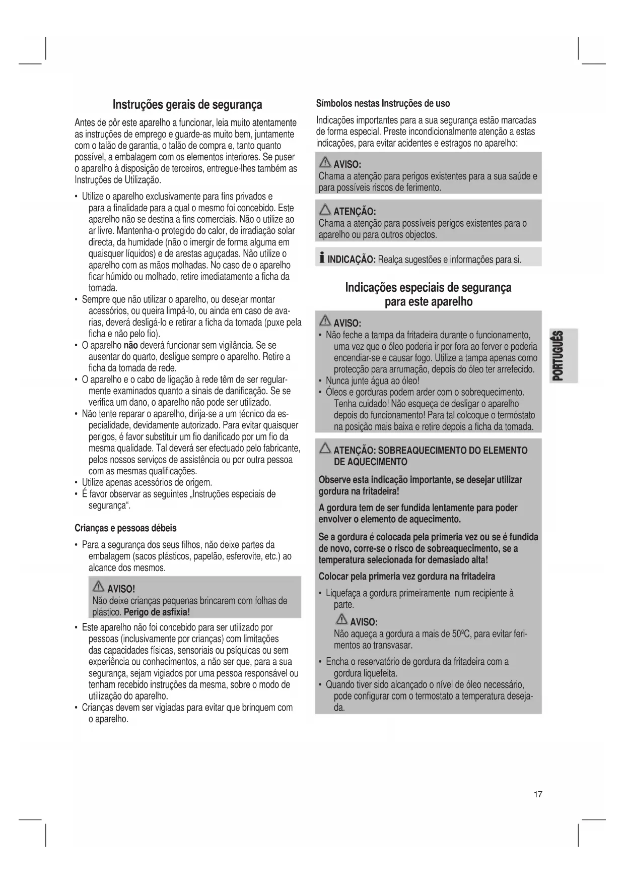PORTUGUÊS Instruções gerais de segurança