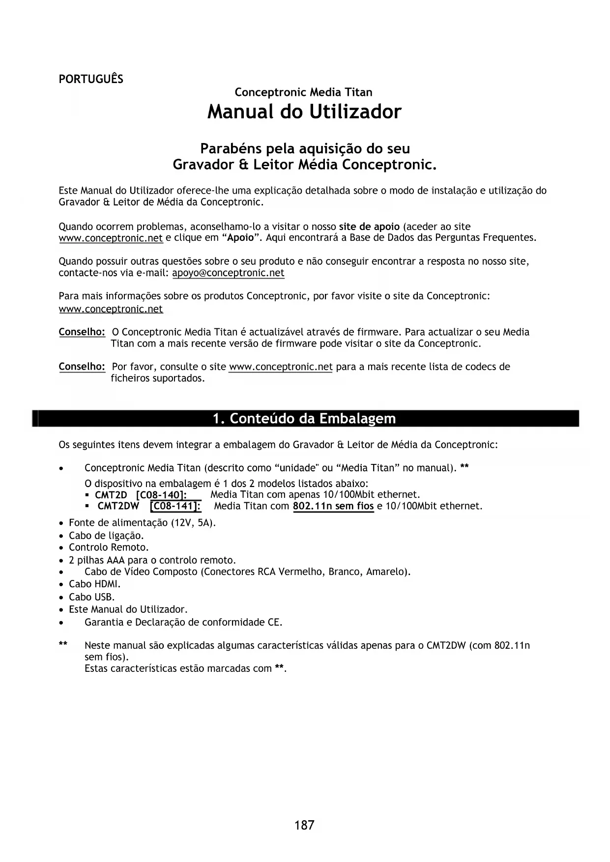 • Conceptronic Media Titan (descrito como “unidade" ou “Media Titan” no manual). **