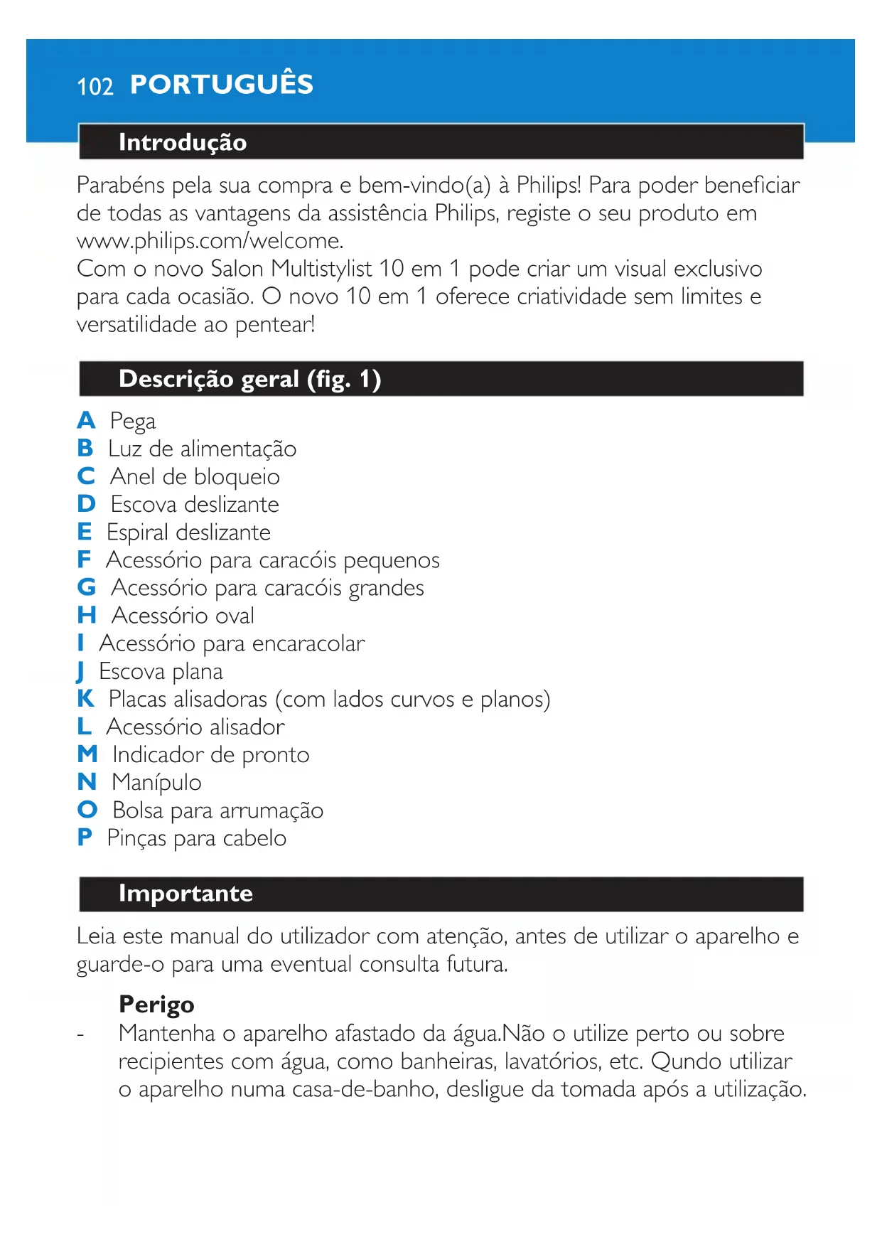 Leia este manual do utilizador com atenção, antes de utilizar o aparelho e