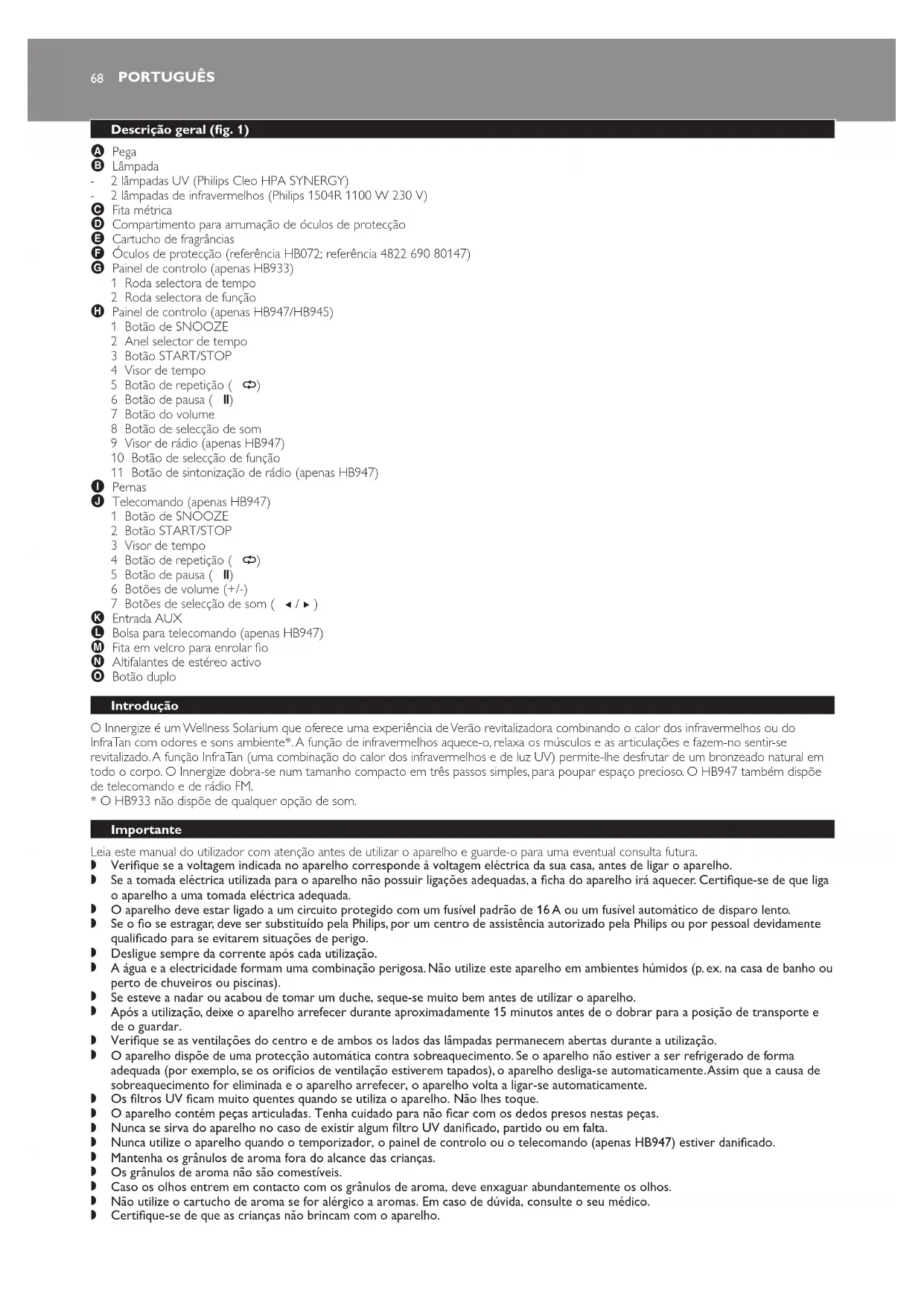 Encontre gratuitamente o manual do aparelho Innergize HB945 PHILIPS em formato PDF.