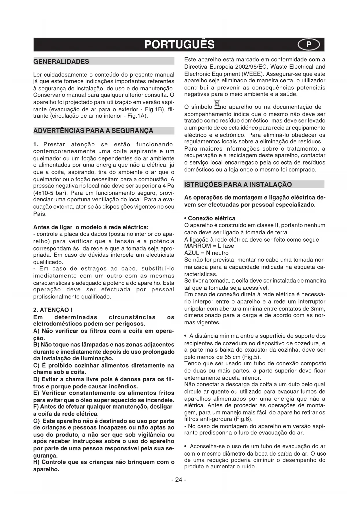 rante (evacuação de ar para o exterior - Fig.1B), fil-