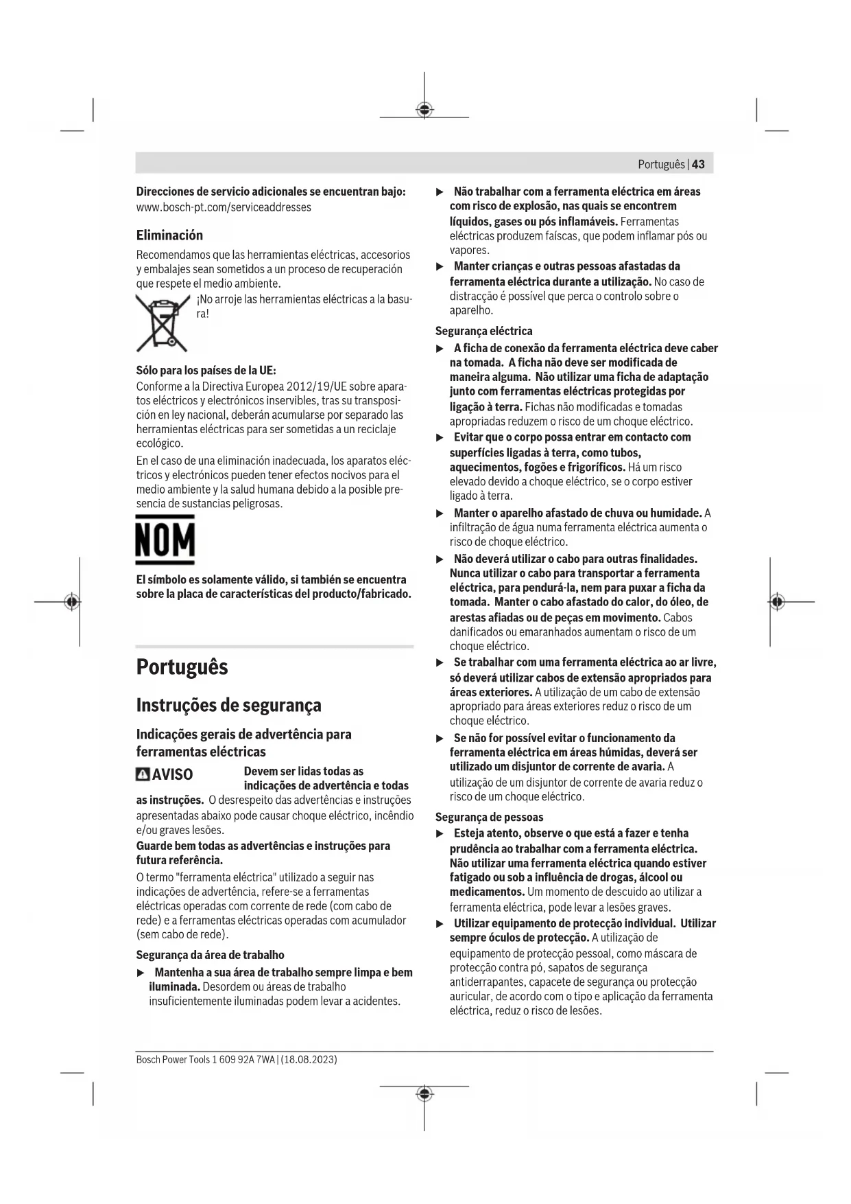eléctrica, reduz o risco de lesões. Bosch Power Tools 1 609 92A 7WA | (18.08.2023)44 | Português