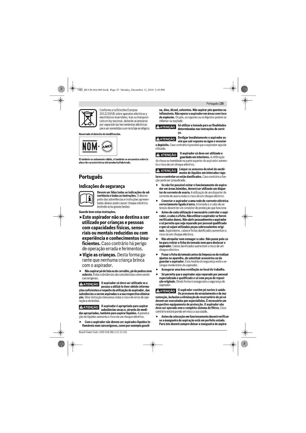 ATENÇÃO ATENÇÃO ATENÇÃO ATENÇÃO ATENÇÃO OBJ_BUCH-464-008.book Page 25 Monday, December 12, 2016 2:10 PM26 | Português 1 609 92A 2N2 | (12.12.16) Bosch Power Tools ção montada no aspirador, para que não possa escapar