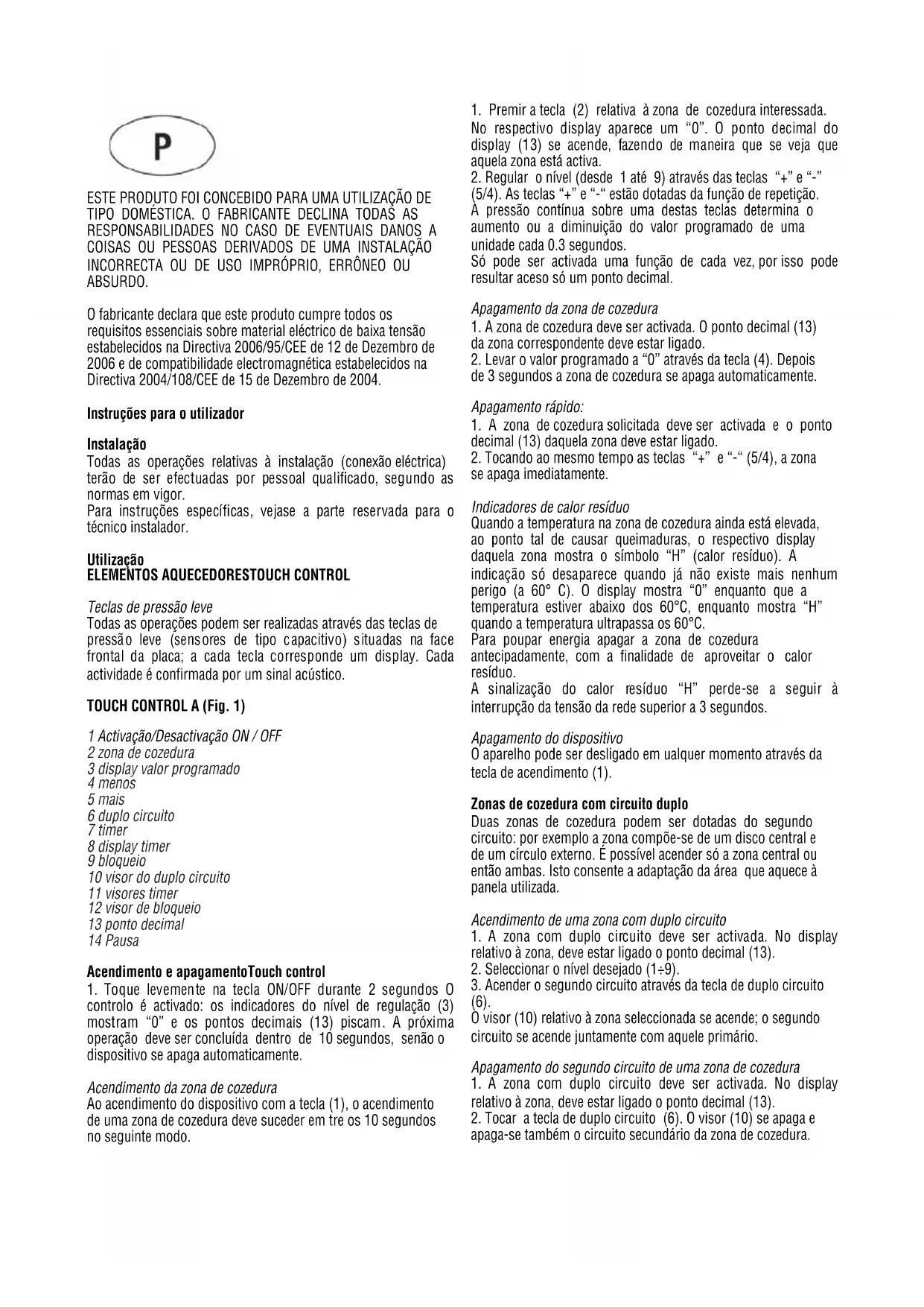 ELEMENTOS AQUECEDORESTOUCH CONTROL Teclas de pressão leve