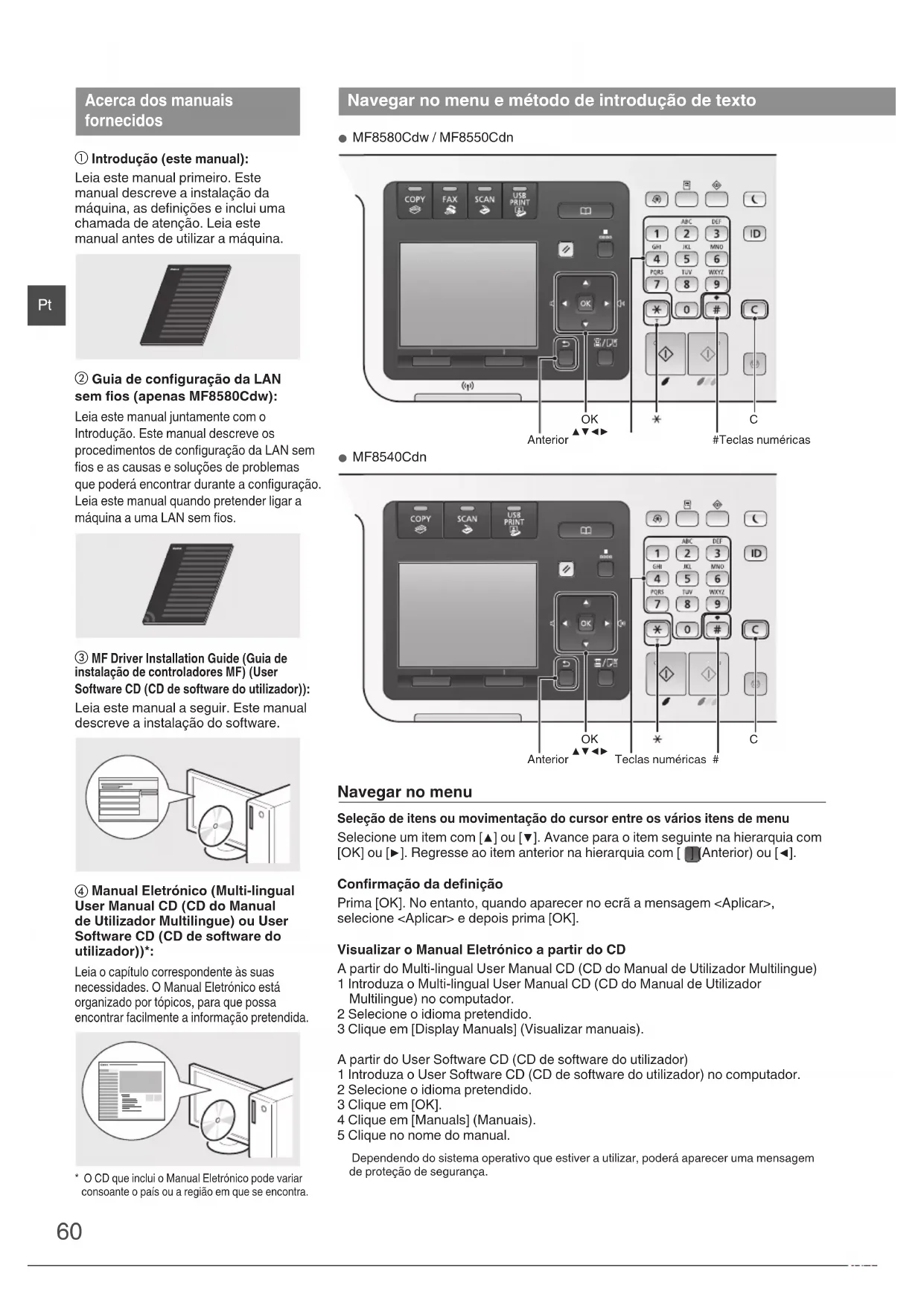 encontrar facilmente a informação pretendida. * O CD que inclui o Manual Eletrónico pode variar consoante o país ou a região em que se encontra. Navegar no menu e método de introdução de texto