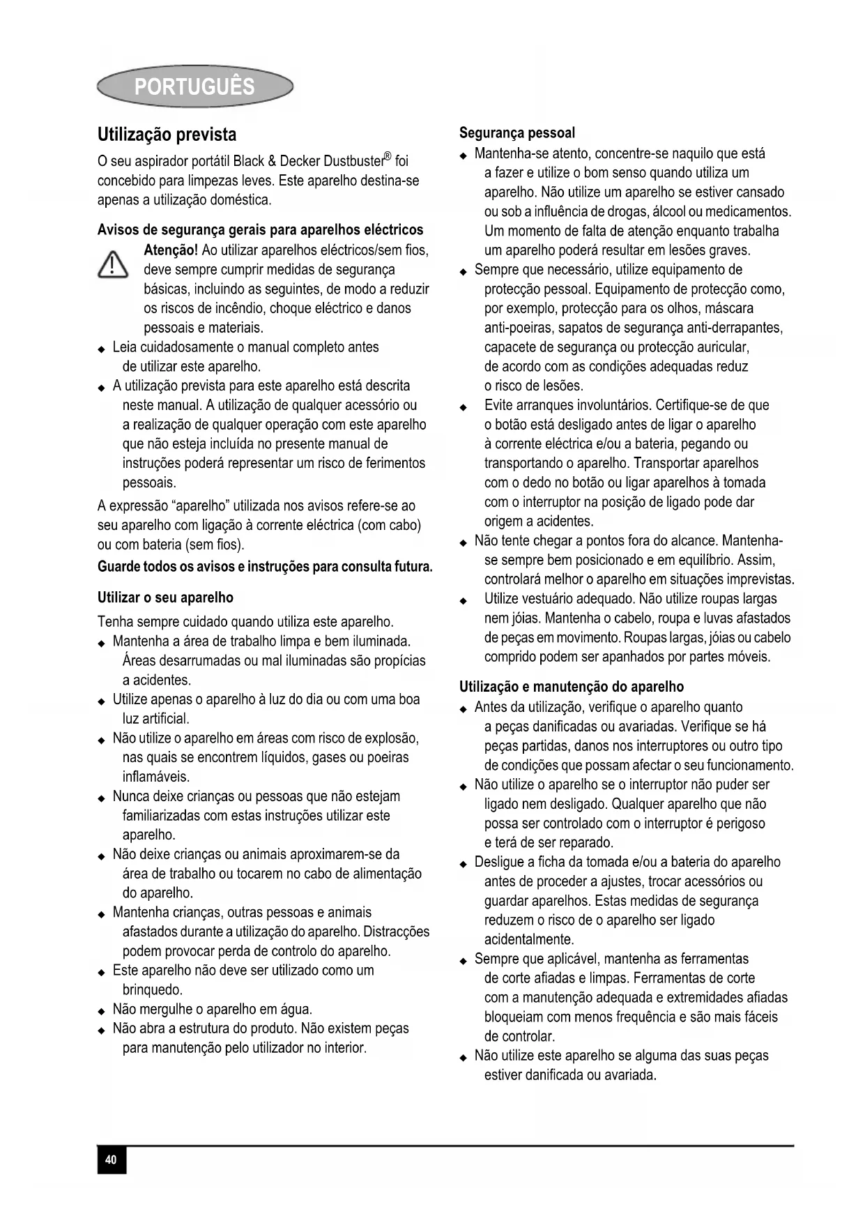 PV9605N - Aspirador BLACK & DECKER - Manual de utilização gratuito