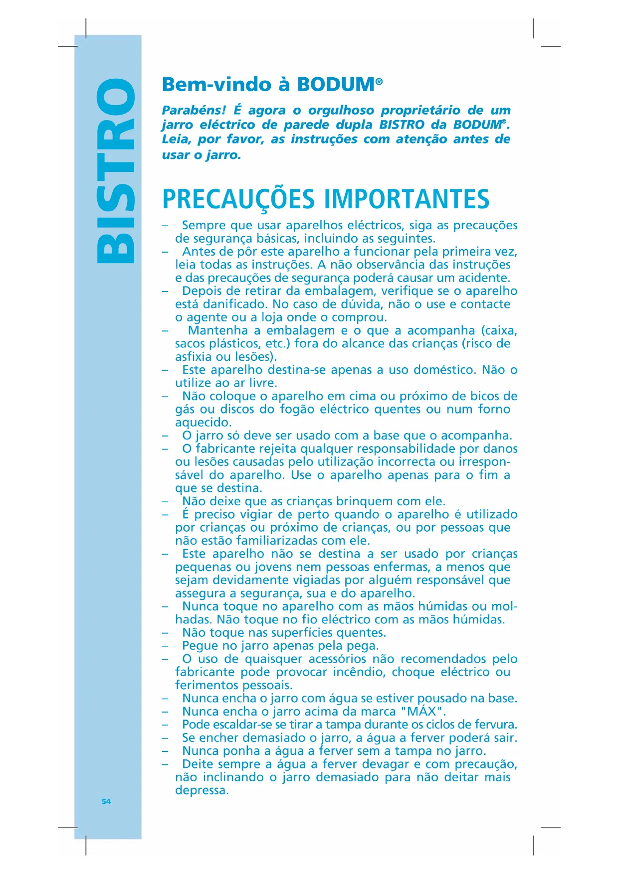 MANUAL DE UTILIZADOR Bistro 11445 BODUM