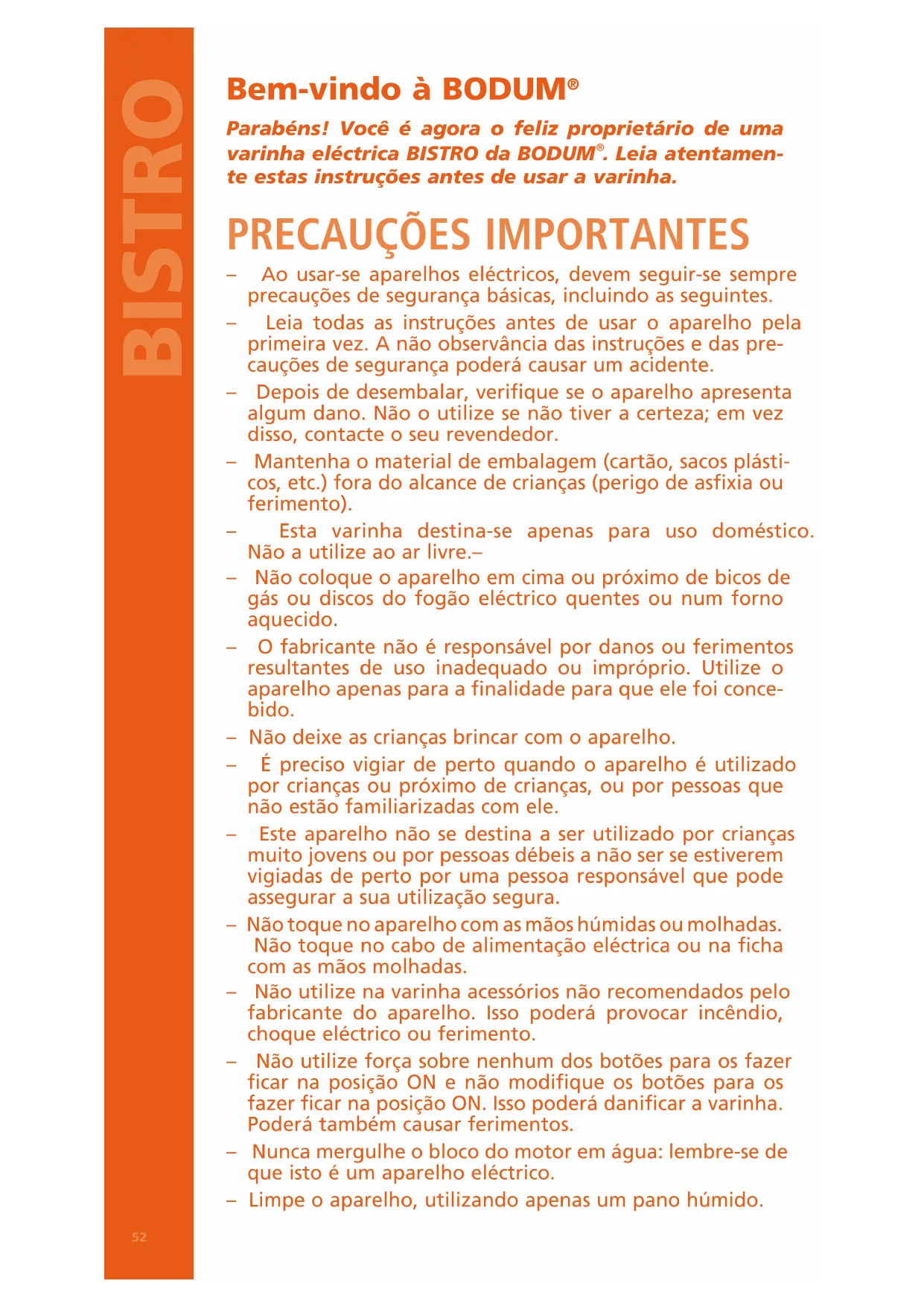 Parabéns! Você é agora o feliz proprietário de uma varinha eléctrica BISTRO da BODUM