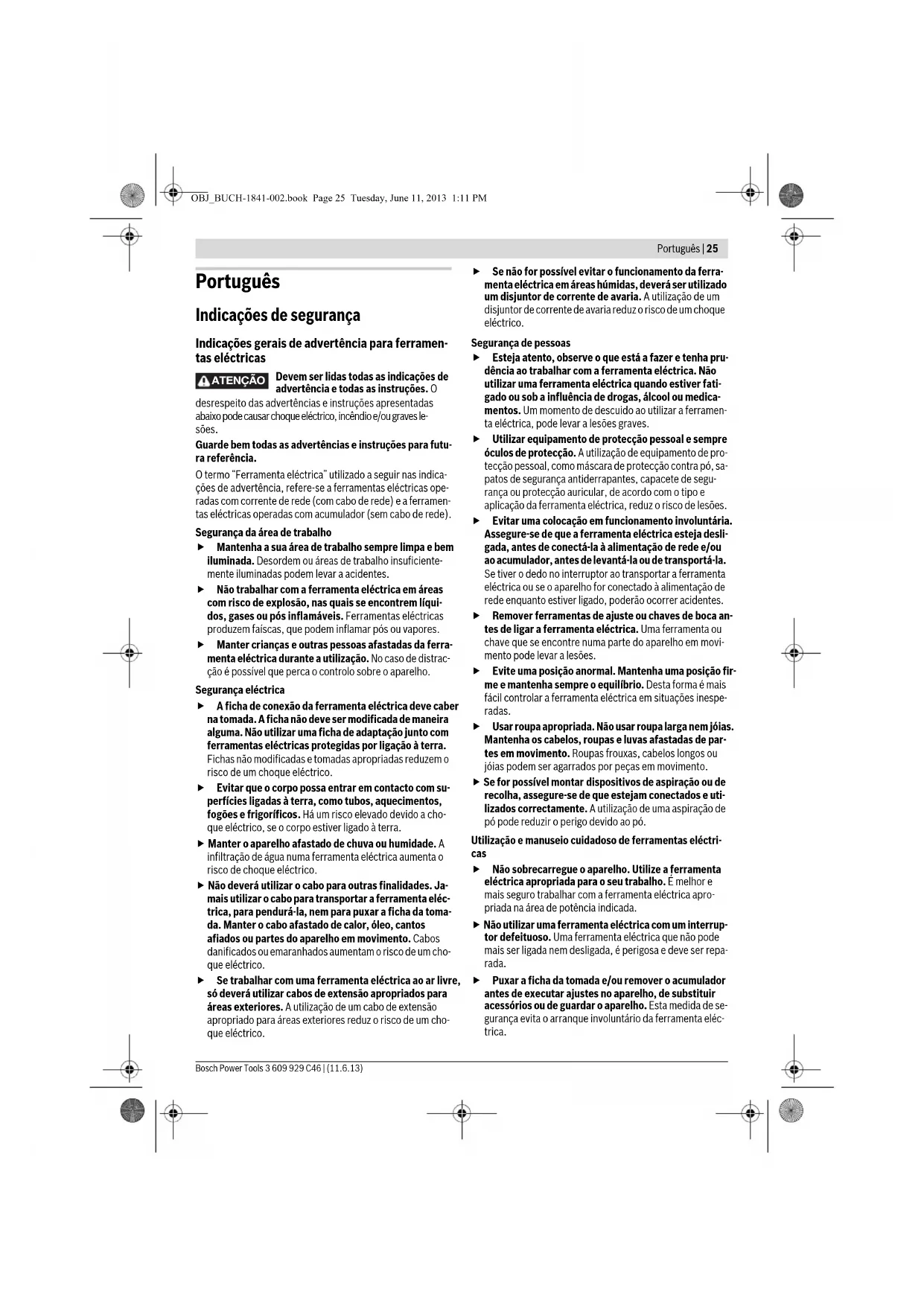 OBJ_BUCH-1841-002.book Page 24 Tuesday, June 11, 2013 1:11 PMPortuguês | 25 Bosch Power Tools 3 609 929 C46 | (11.6.13) Português