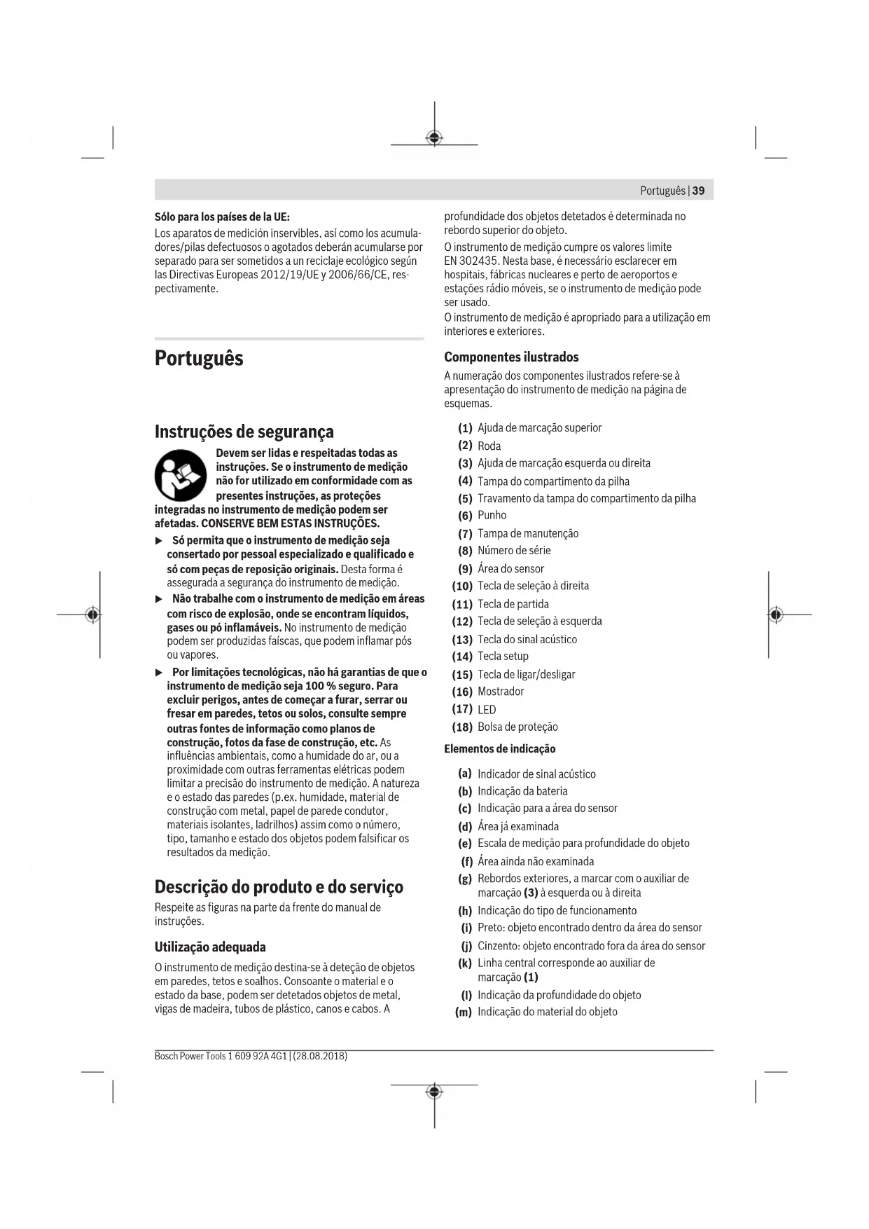 Bosch Power Tools 1 609 92A 4G1 | (28.08.2018)40 | Português 1 609 92A 4G1 | (28.08.2018) Bosch Power Tools (n)