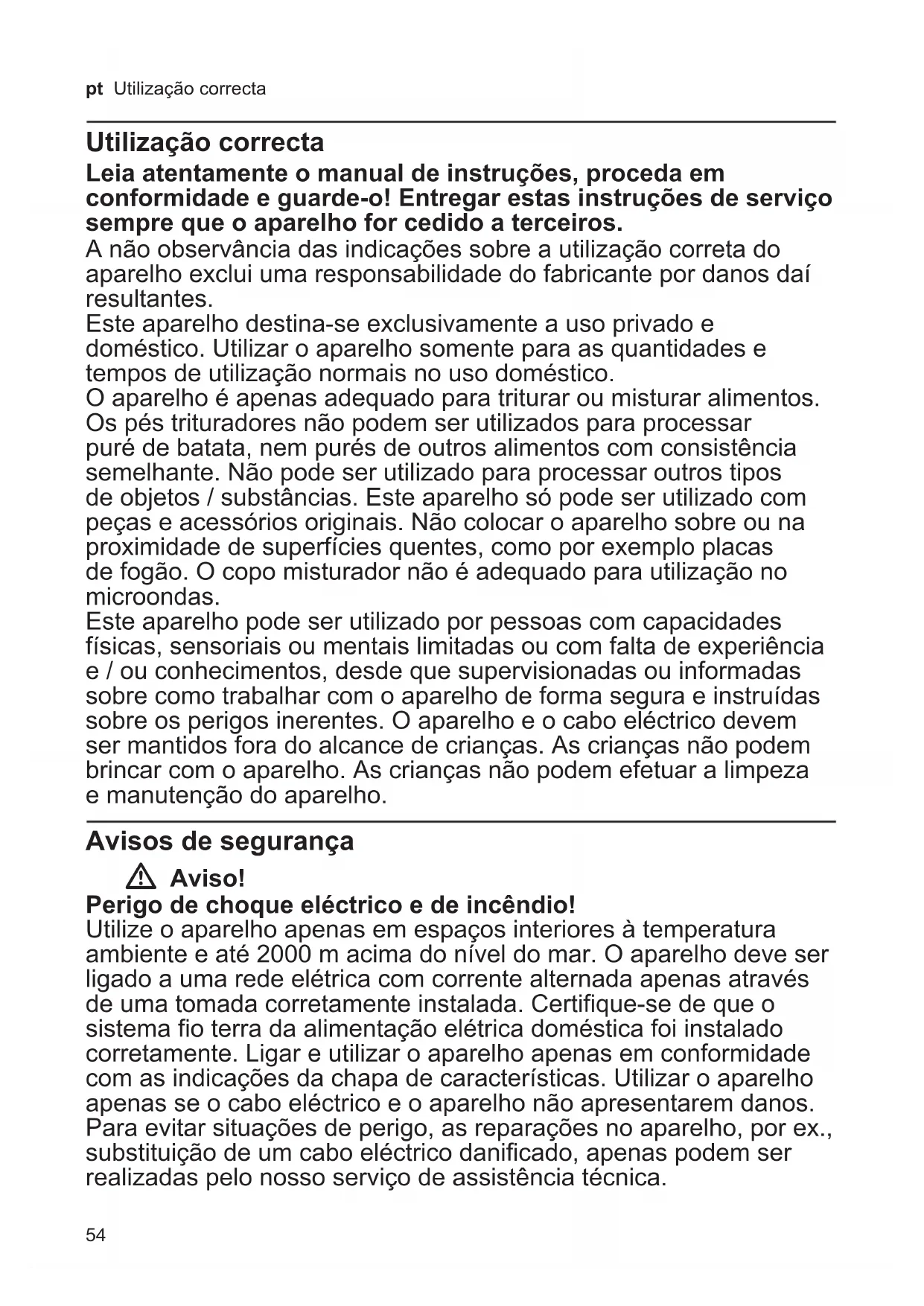 Utilização correcta 54