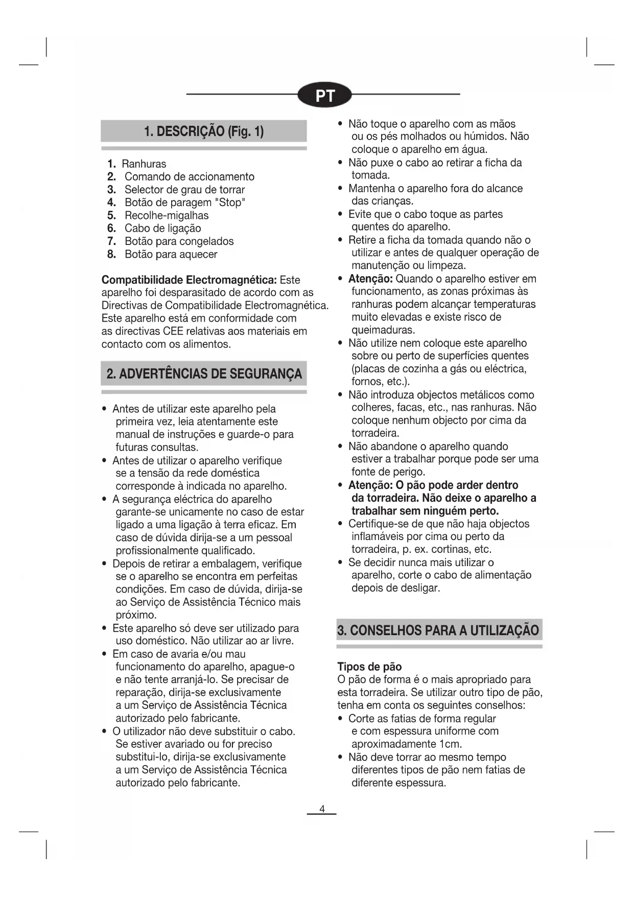 esta torradeira. Se utilizar outro tipo de pão,