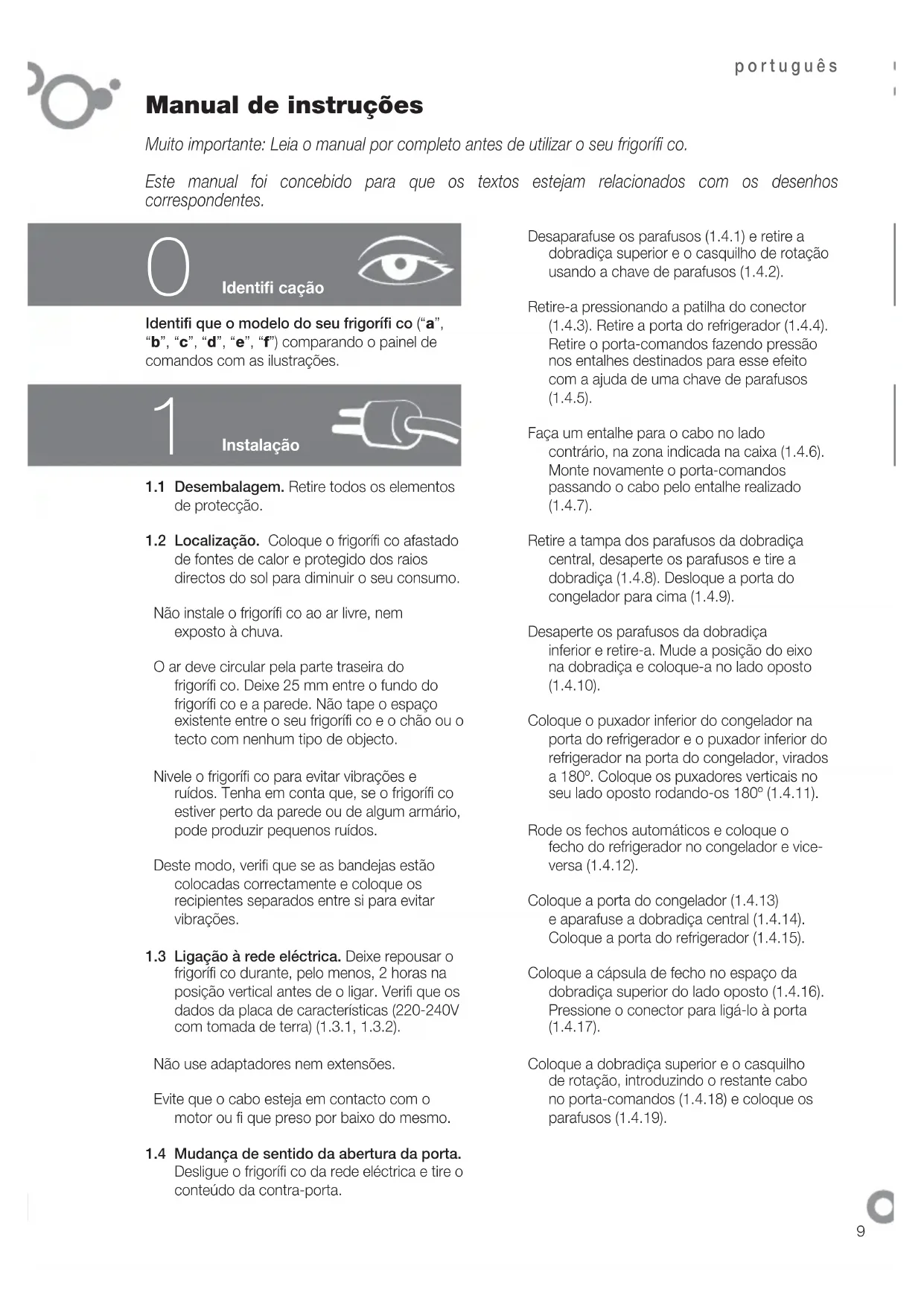 Moi importante: Le integramente este manual antes de utilizes-lo seu frigorifico.